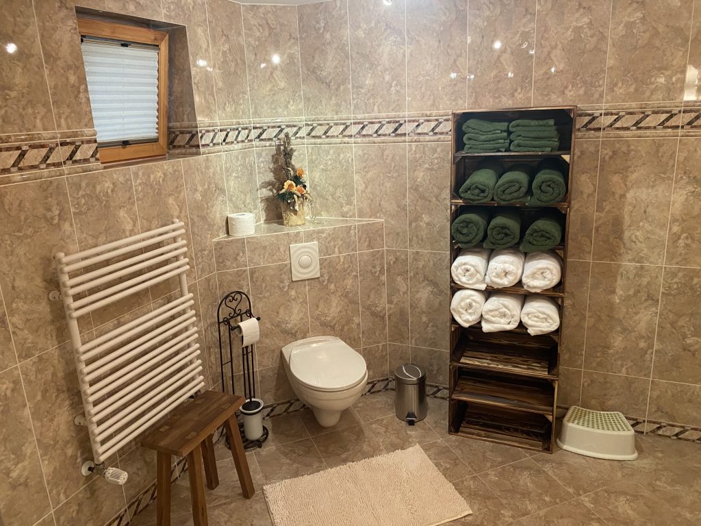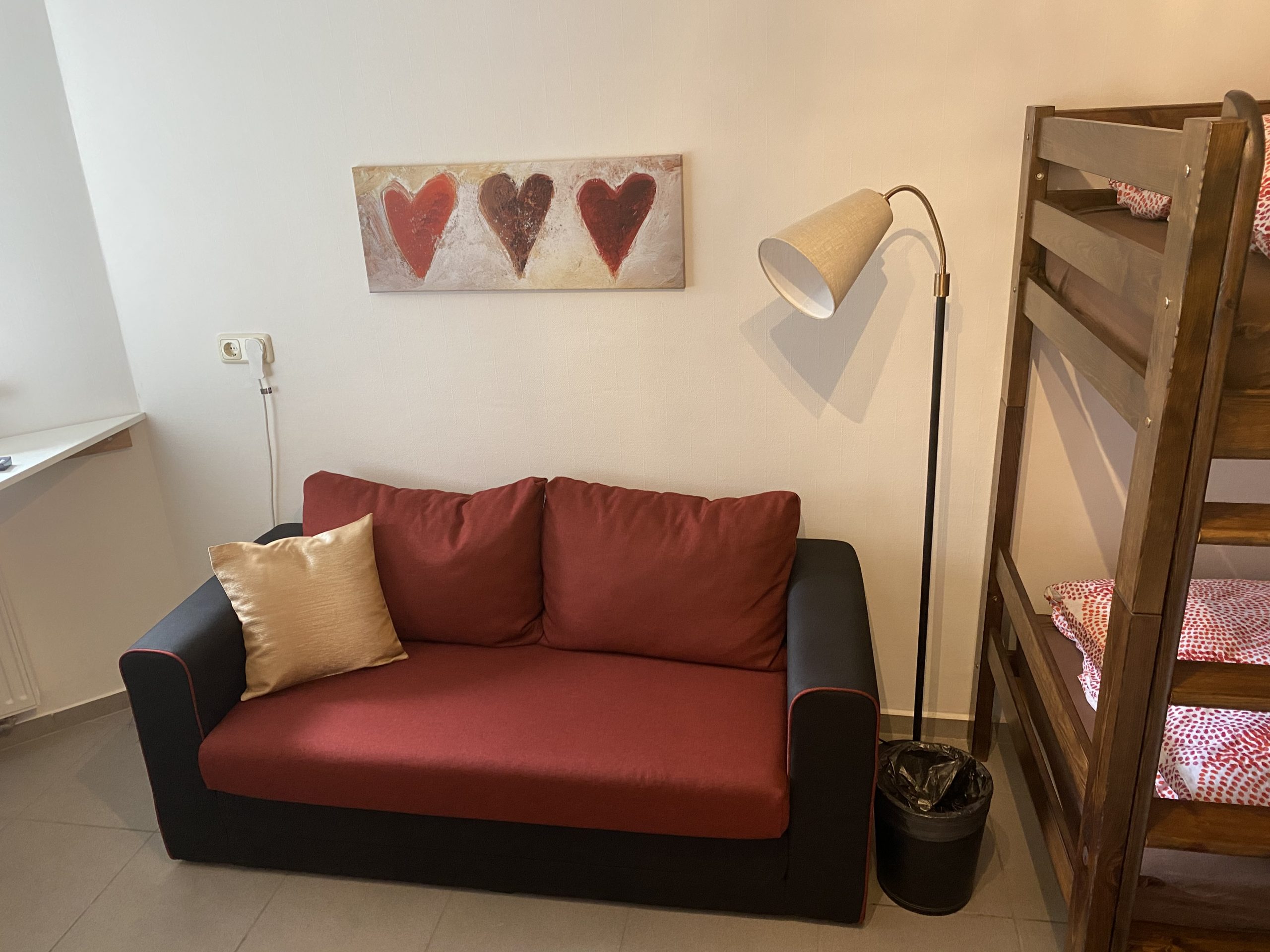 Dieses Zimmer ist sehr vielseitig nutzbar. Das Etagenbett bietet eine Liegefläche von 0,9m x 2m und könnte damit auch von Erwachsenen genutzt werden. Besonders unsere Jugend genießt das Fernsehgerät im Zimmer sehr. Dieses Zimmer verfügt über ein extra WC wo auch die Waschmaschine steht. Reisen sie nicht mit 6 Personen kann dieses Zimmer auch als Trockenraum genutzt werden. Auch könnte das Klappsofa als Notaufbettung verwendet werden.